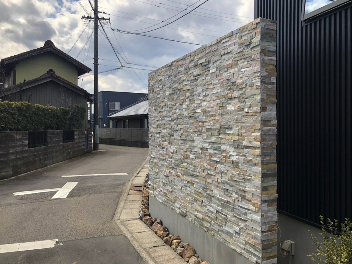 高級感があり、人気の仕上げです。ひとつとして同じ模様の無い細割した天然石張り仕上げをおこなえば、唯一無二の塀が出来上がります。
