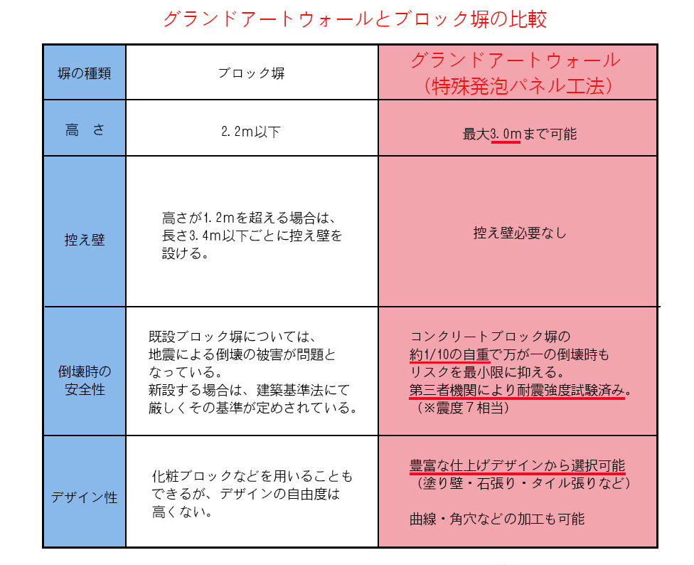 ここでグランドアートウォールとブロック塀の比較をご紹介いたします。